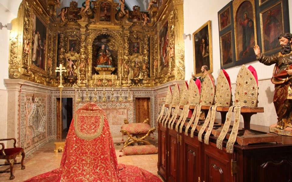 Na Sala do Capítulo, antigo espaço para as reuniões do Cabido da Sé de Lisboa, construído no século XVIII sobre a sacristia seiscentista da igreja. Pretende-se que o espaço assuma cenicamente essa mesma dimensão de local das reuniões do Cabido, expondo-se algum mobiliário joanino utilizado nesse contexto e enquadrado pelo revestimento das paredes com silhares de azulejaria azul e branca, sobre azulejos fingindo marmoreados.